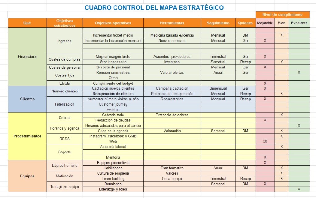 Para finalizar, recordar que al inicio de año o ejercicio es recomendable elaborar una plantilla similar a esta, sobre la cual plasmar las acciones mas importantes a trabajar y poder llevar el proyecto de un centro veterinario a buen puerto. De no hacerlo, iremos a impulsos, sin un foco claro.
